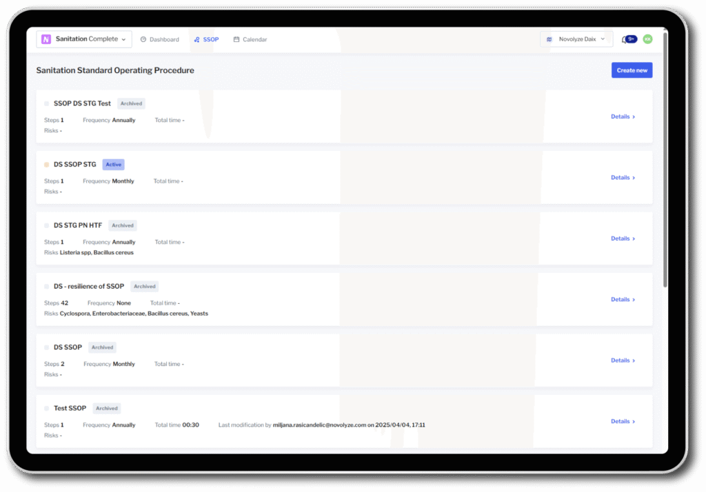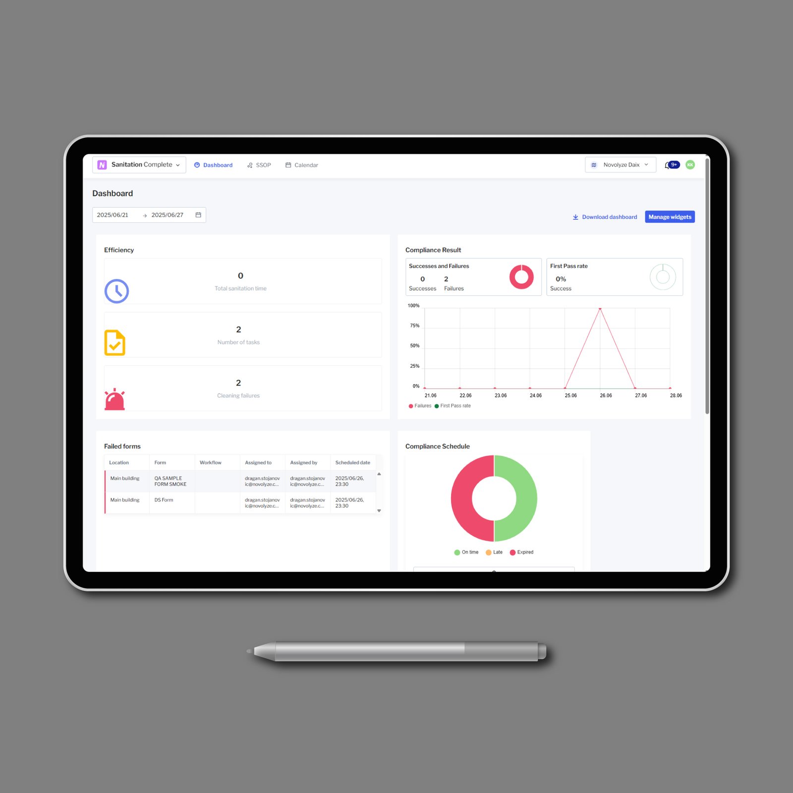 Bring consistency, traceability, and accountability to sanitation operations. Novolyze Sanitation Complete digitizes sanitation schedules, task verification, and compliance reporting – helping you avoid lapses, reduce chemical usage, and prepare for inspections with confidence.