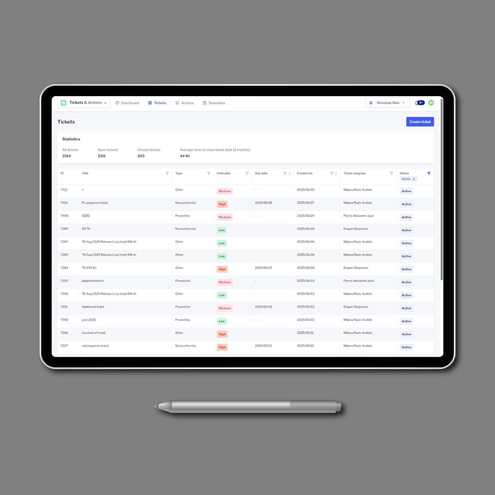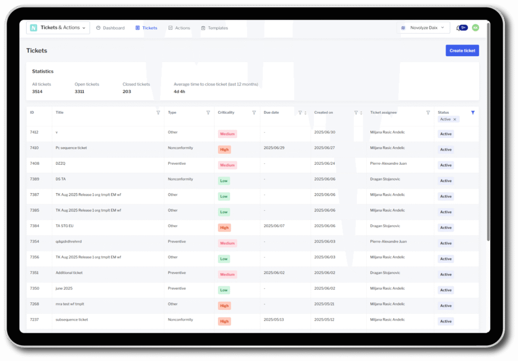 • Tickets to initiate and track corrective actions linked to specific form submissions
